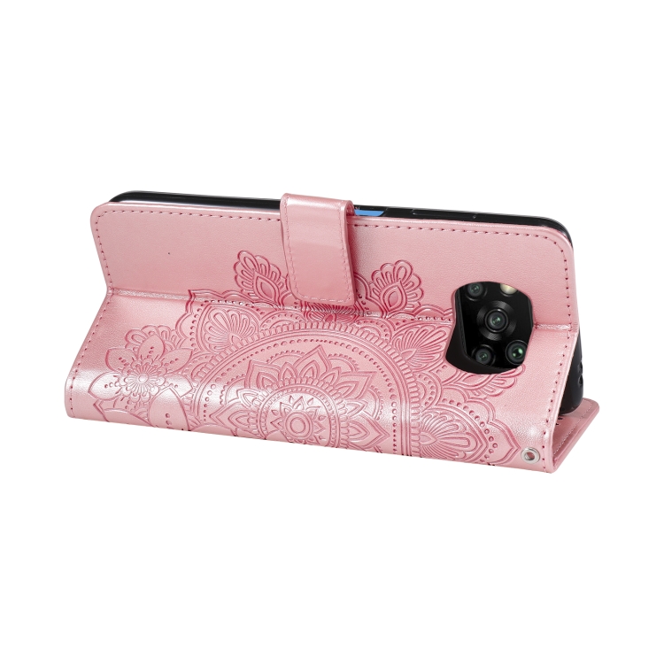 Para Xiaomi Poco X3 / X3 Pro / X3 Nfc 7-Petal Flores Patrón de Estampado de Estampado de Pu Horizontal Flip Pu Funda con Soporte y Ranuras para Tarjetas y Marco de Fotografía (Oro Rosa)