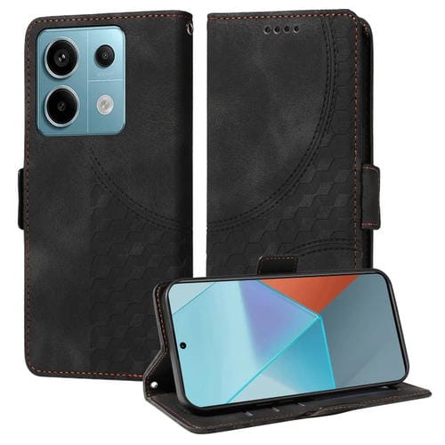Para Xiaomi Poco X6 Funda de Teléfono de Cuero Estrellado con Rombos En Relieve (Negro)
