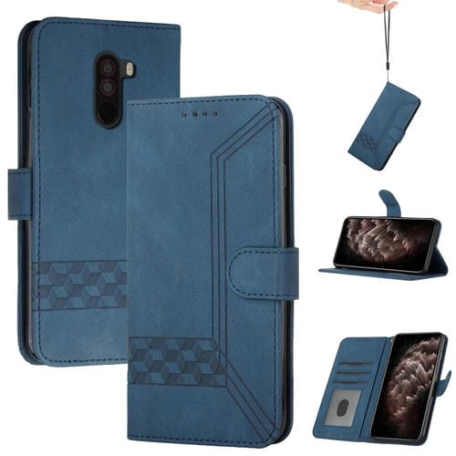 Para Xiaomi Pocophone F1 Piel Cúbica con Flip Cuero Funda Telefónica (Royalblue)