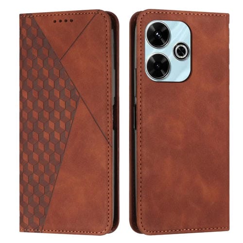 Para Xiaomi Redmi 13 4G Diamond Splicing Skin Feel Funda de Teléfono de Cuero Magnético (Marrón)