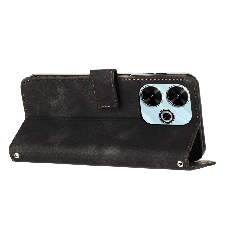 Para Xiaomi Redmi 13 4G Dream Triangle Funda de Cuero para Teléfono con Cordón (Negro)