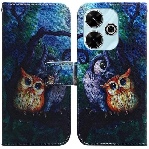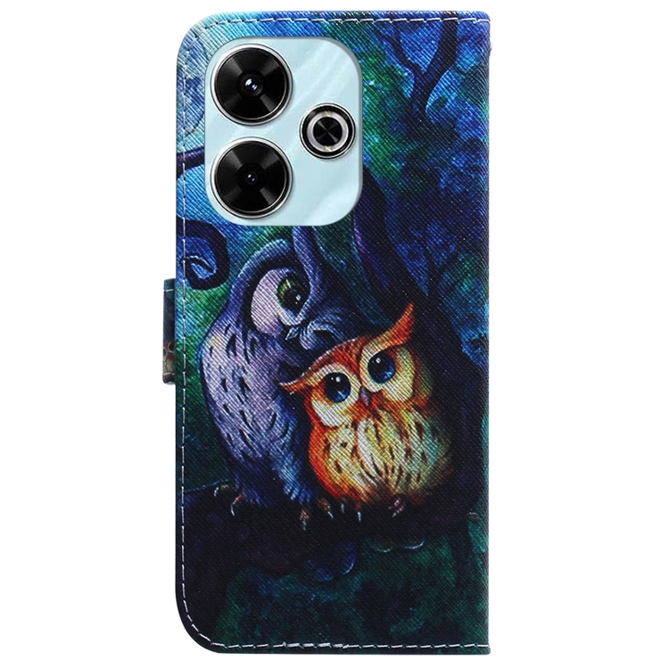 Para Xiaomi Redmi 13 4G Funda de Cuero con Tapa con Dibujo Coloreado (Búho de Pintura al Óleo)