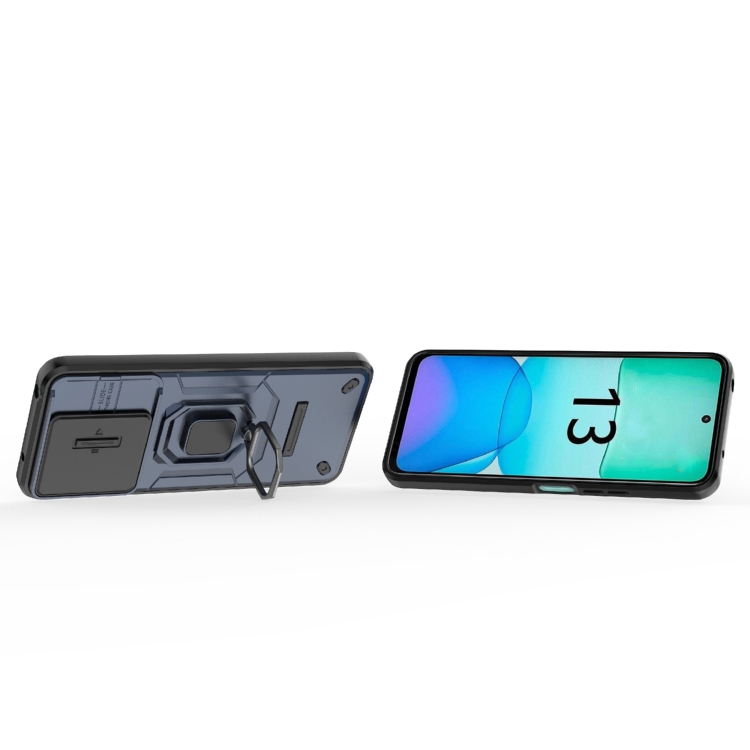 Para Xiaomi Redmi 13 4G Global Sliding Camshield TPU + PC Funda para Teléfono a Prueba de Golpes con Soporte (Azul)