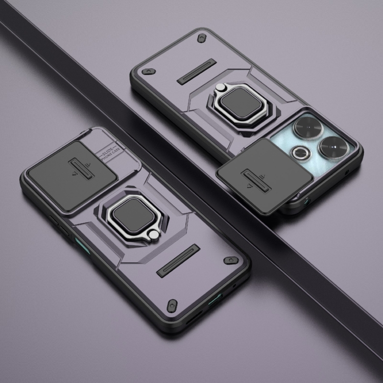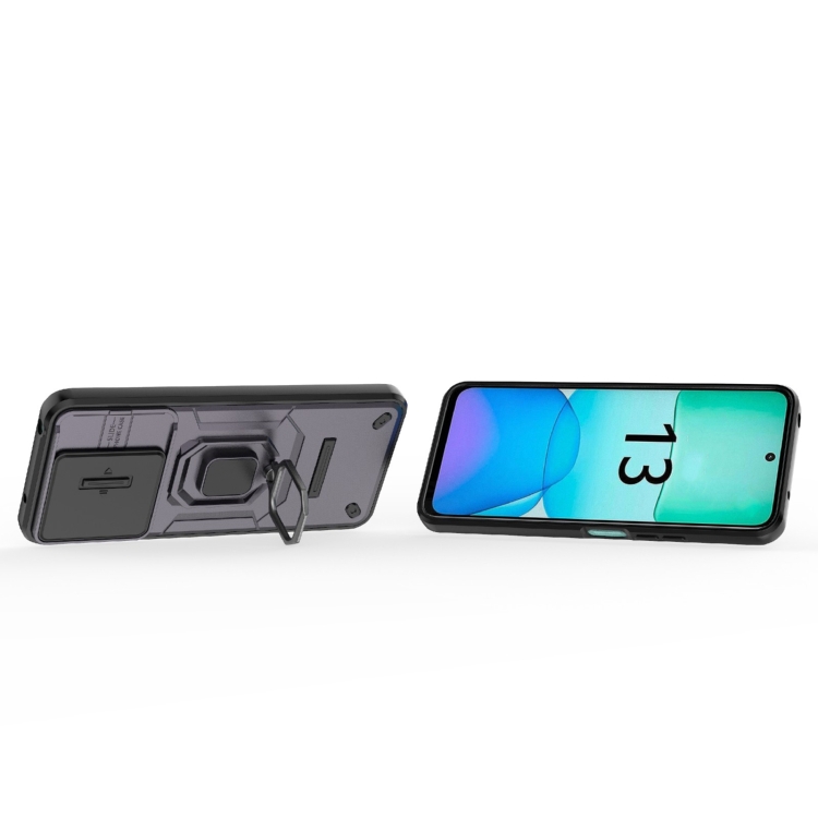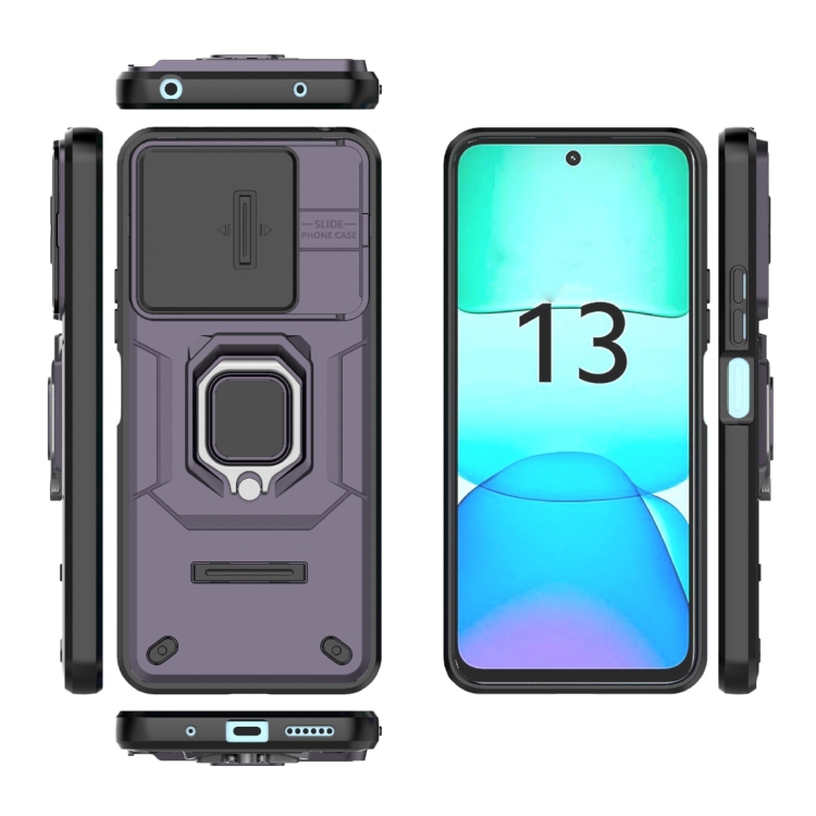 Para Xiaomi Redmi 13 4G Global Sliding Camshield TPU + PC Funda para Teléfono a Prueba de Golpes con Soporte (Púrpura)