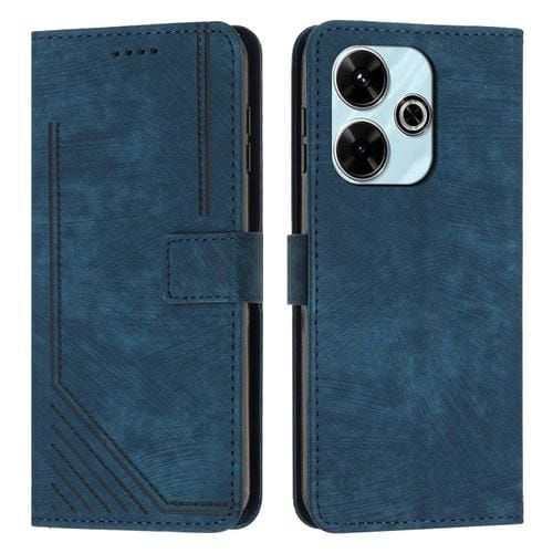 Para Xiaomi Redmi 13 4G Skin Feel Funda de Cuero con Patrón de Rayas y Cordón Largo (Azul)