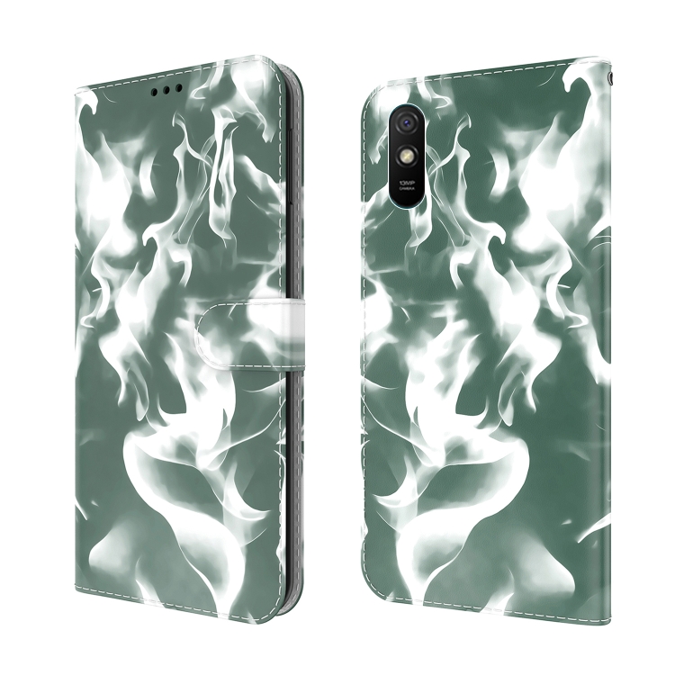 Para Xiaomi Redmi 9A Nube Fog Pattel Horizontal Flip Funda de Cuero con Soporte y Ranura para Tarjeta y Billetera (Verde Oscuro)