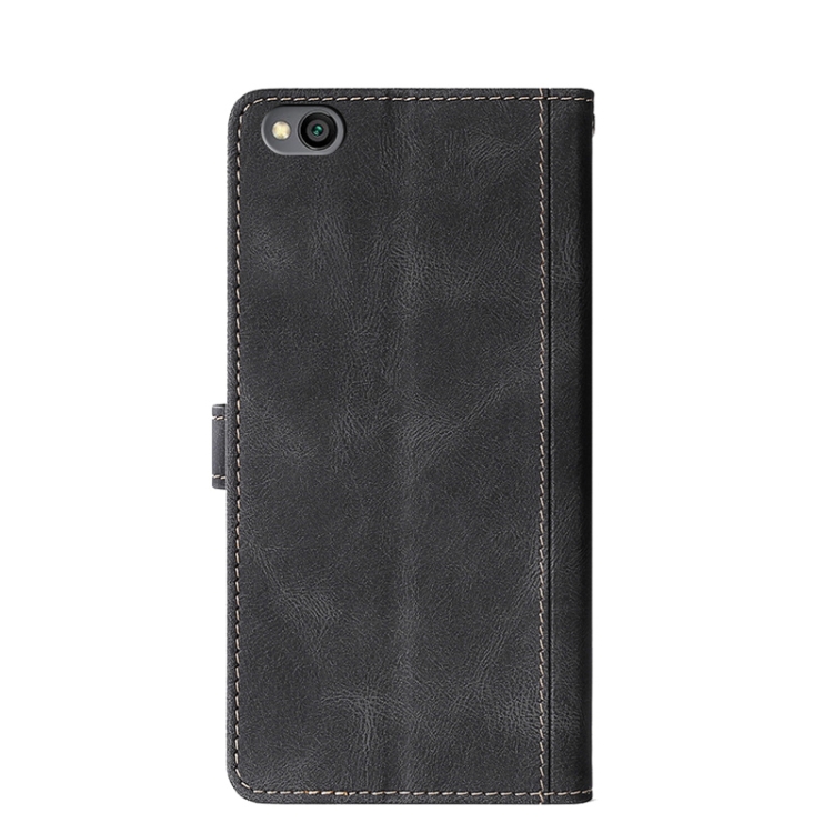 Para Xiaomi Redmi Go Costure la Piel Sienta la Hebilla Magnética Horizontal Flip Pu Funda de Cuero con Soporte y Tragamonedas y Billetera (Negro)