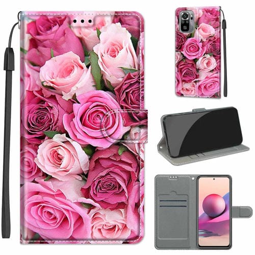 Para Xiaomi Redmi Note 10 4G / Nota 10S Dibujo de Color de Voltaje Cierre Magnético Horizontal Flip Pu Funda de Cuero con Soporte y Ranuras de Tarjetas (C17 Hoja Verde Rosa Rosa)