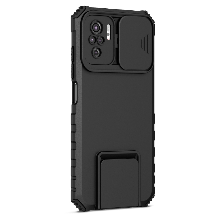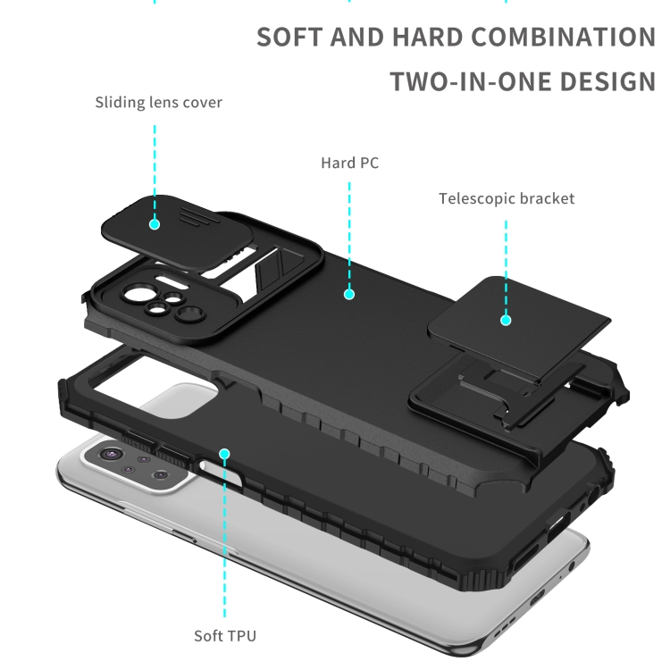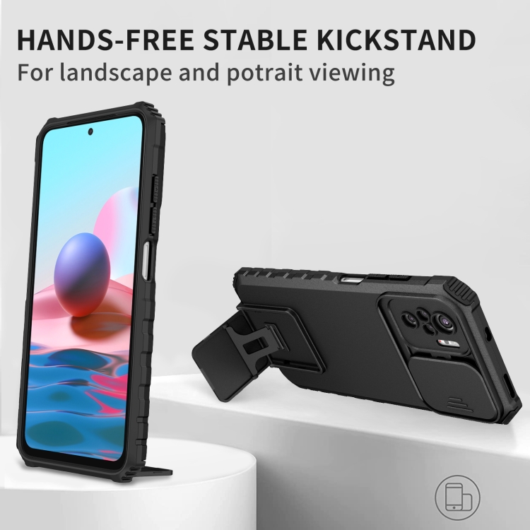 Para Xiaomi Redmi Note 10 4G Soporte estereoscópico Deslizante Camshield Phone Case (Negro)