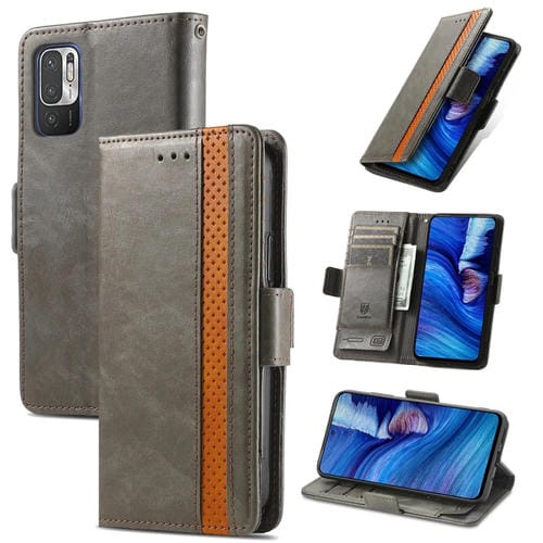 Para Xiaomi Redmi Note 10 5G Caseno Empalme de Negocios Dual Hebilla Magnética Horizontal Flip Pu Funda de Cuero con Soporte y Tragamonedas y Billetera (Gris)