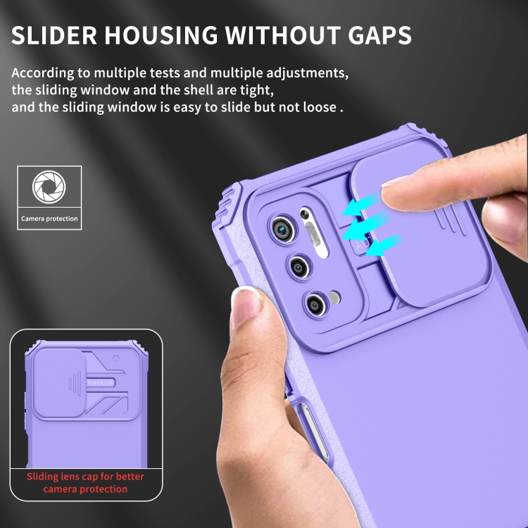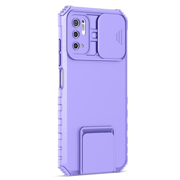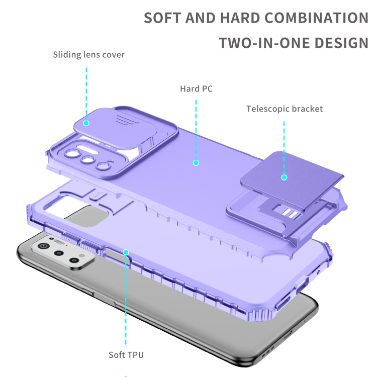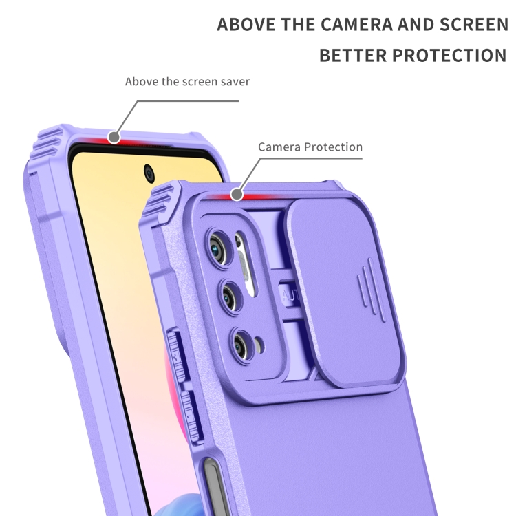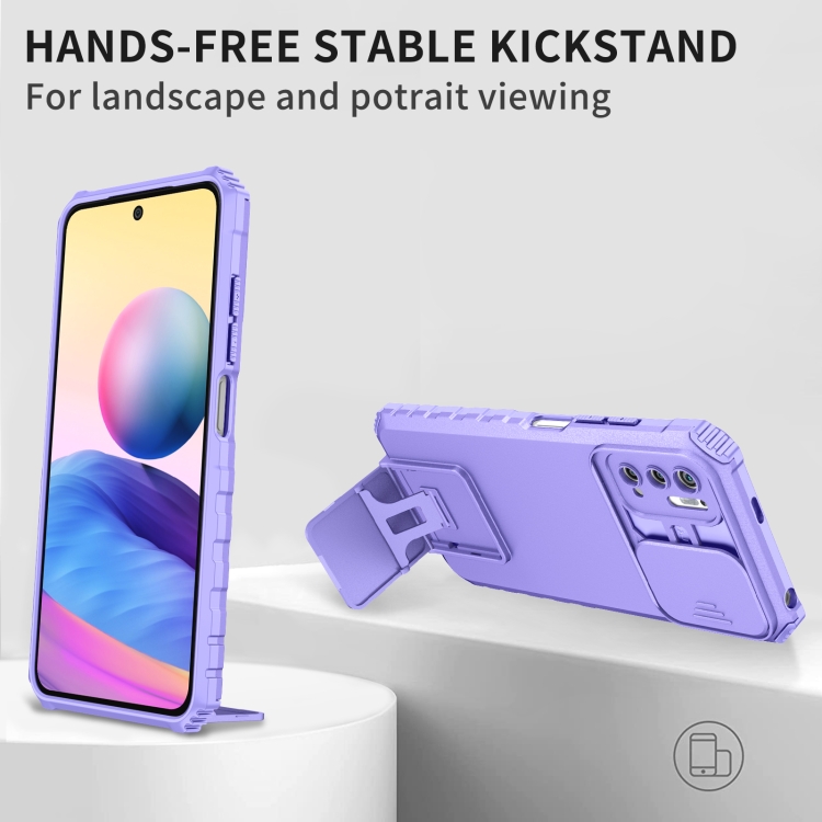 Para Xiaomi Redmi Note 10 5G Soporte estereoscópico Deslizante Camshield Phone Case (Púrpura)