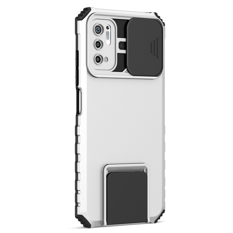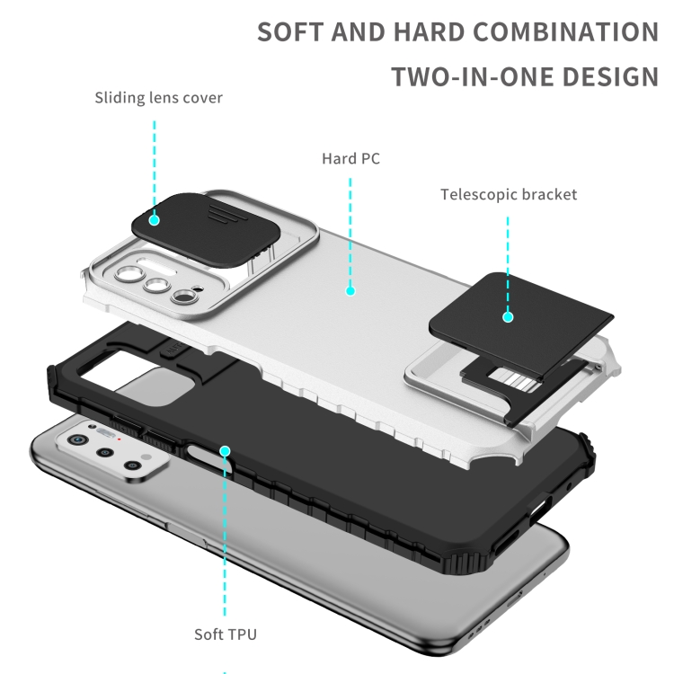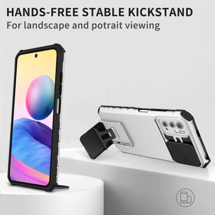 Para Xiaomi Redmi Note 10 5G Soporte estereoscópico Funda deslizante para teléfono Camshield (Blanco)