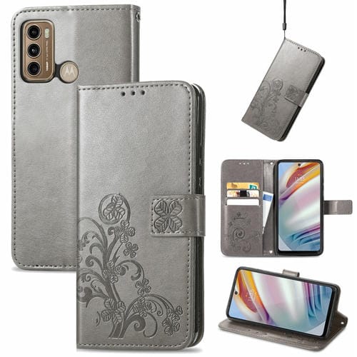 Para Xiaomi Redmi Note 10 Pro 5G / Poco X3 Gt Cierre de Cuatro Hojas con Hebilla En Relieve Protección de Teléfono Móvil Funda de Cuero con Cortante y Ranura para Tarjeta y Función de Billetera y Soporte (Gris)