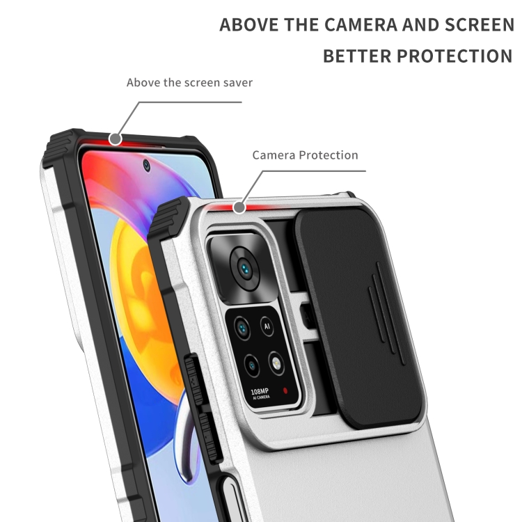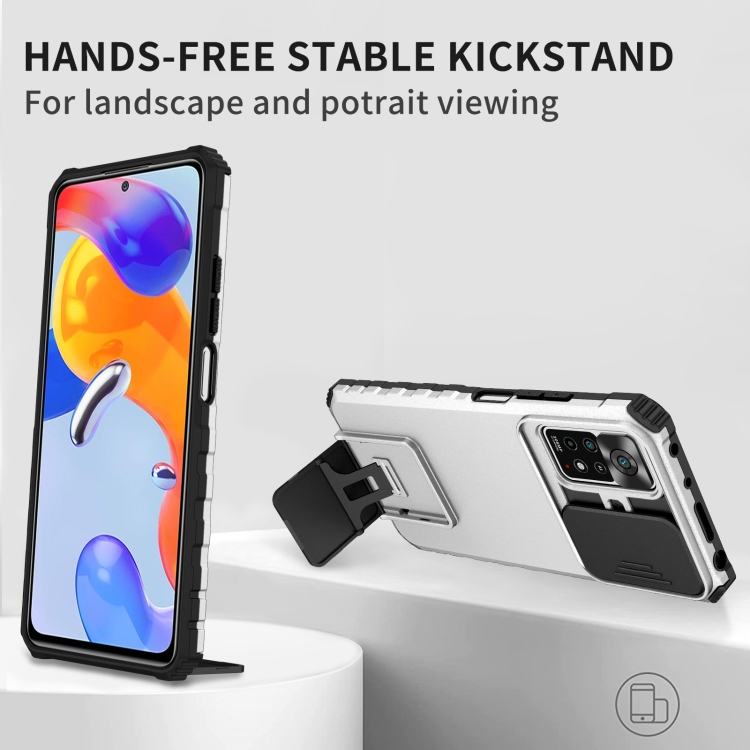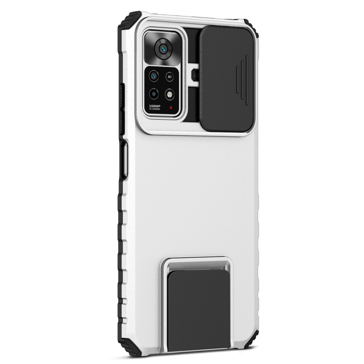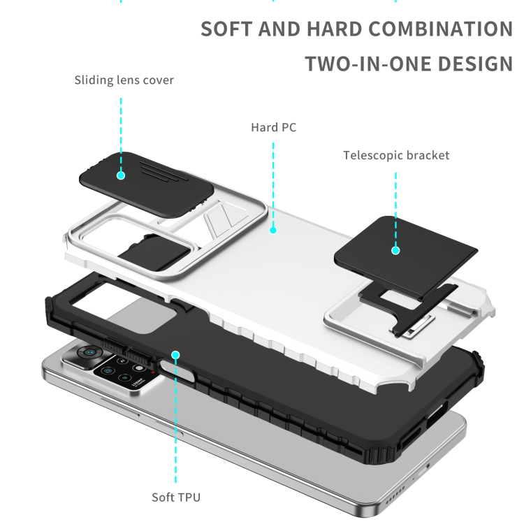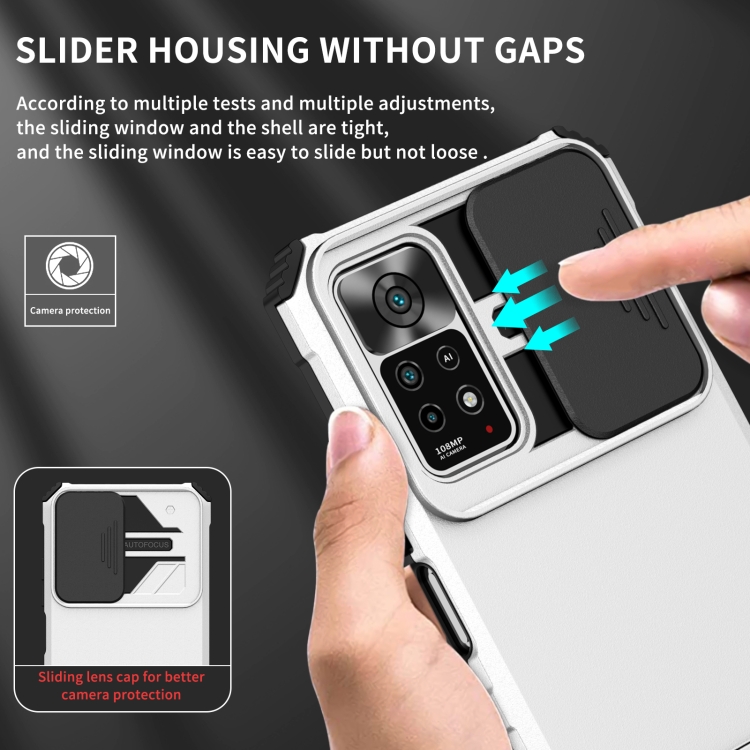 Para Xiaomi Redmi Note 10 Pro Global Stereoscopic Holder Sliding Camshield Phone Case (Blanco)