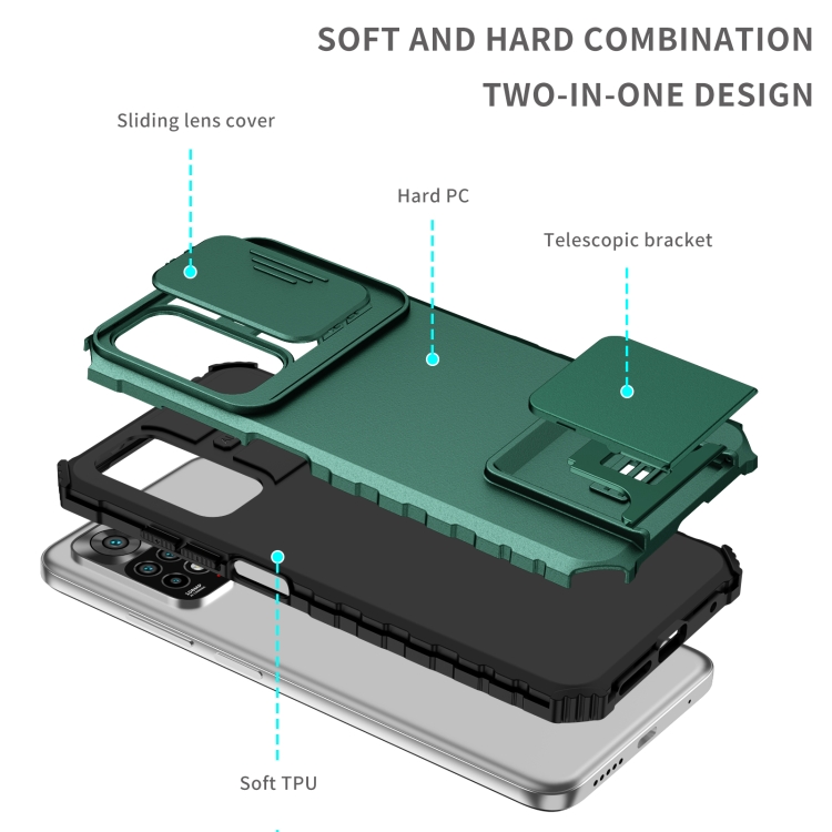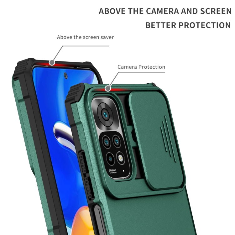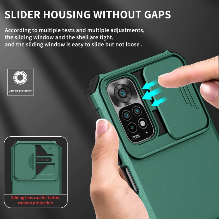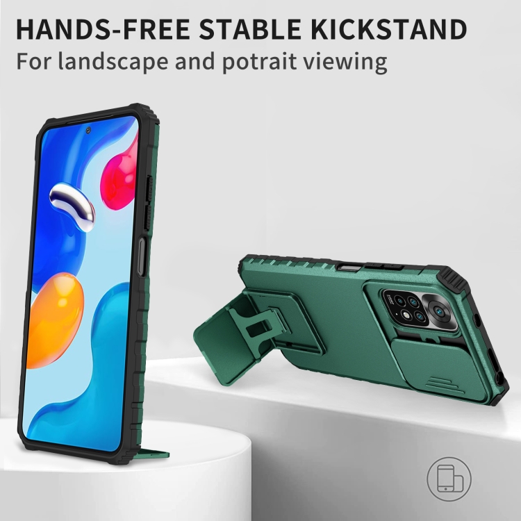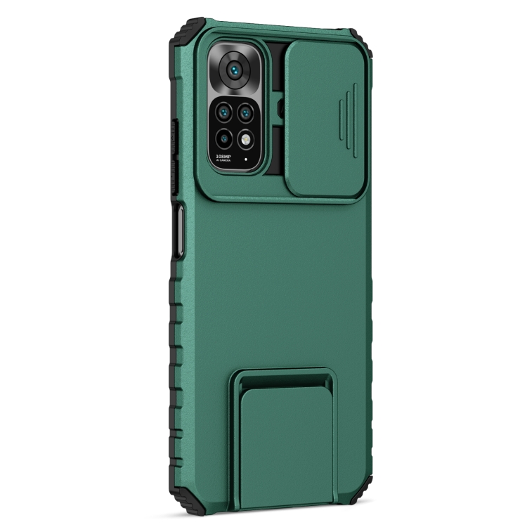 Para Xiaomi Redmi Note 11/11S Global Stereoscopic Holder Sliding Camshield Phone Case (Verde)