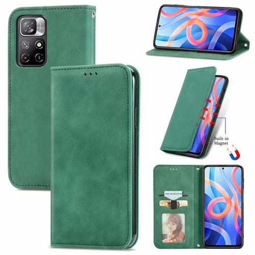 Para Xiaomi Redmi Note 11 Siente Retro Siente Magnético Horizontal Flip Funda (Verde)