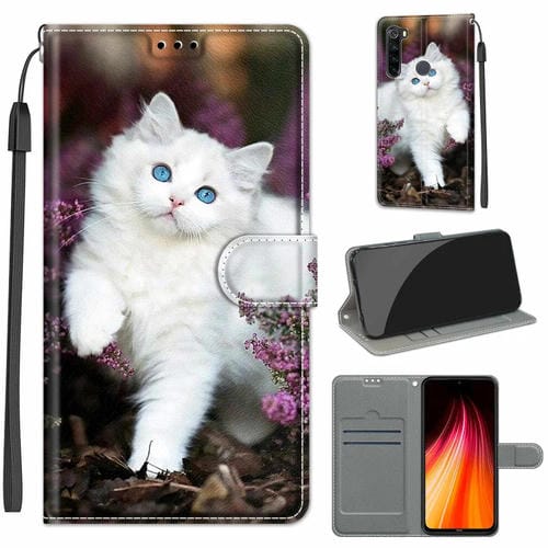 Para Xiaomi Redmi Note 8 Dibujo de Voltaje Dibujo Cierre Magnético Horizontal Flip Pu Funda de Cuero con Soporte y Ranuras para Tarjetas (C08 Flor Bush Big White Cat)
