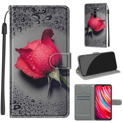 Para Xiaomi Redmi Note 8 Pro Dibujo de Color Pro Dibujo Magnético Cierre de Cuero Horizontal Flip Pu Funda con Soporte y Ranuras para Tarjetas (C14 Black Water Drop Rose)
