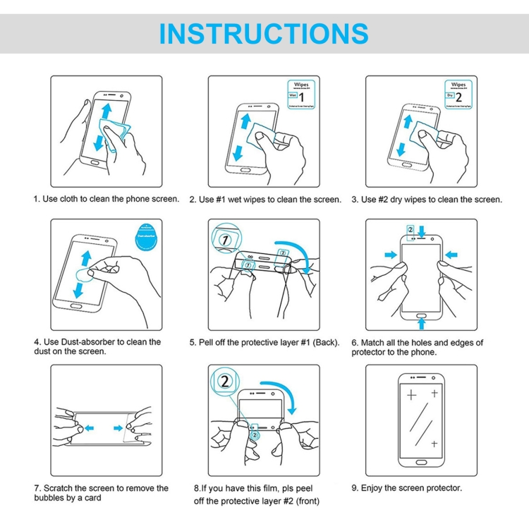 6. Conveniente de usar: tiene una súper adherencia. Antes de adherirse a la película protectora, todo lo que necesita hacer es limpiar bien la pantalla.