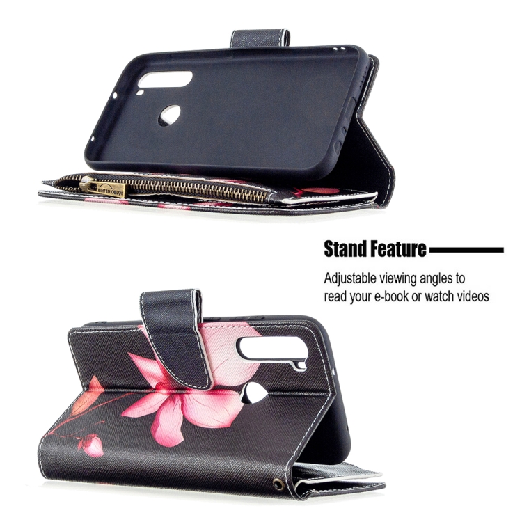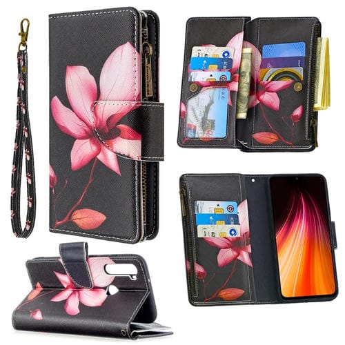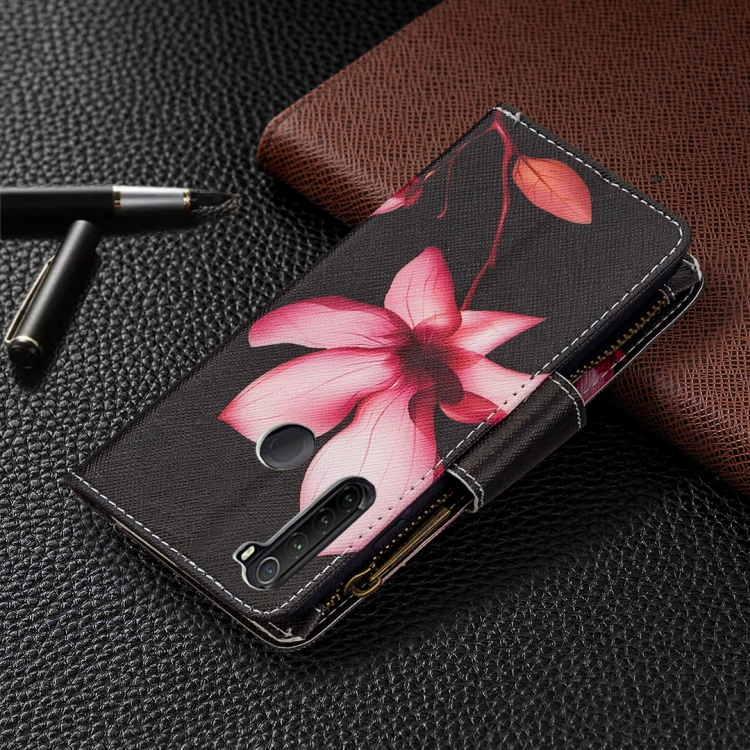 Para Xiaomi Redmi Note 8T Patrón de Dibujo de Colores Cremallera Funda de Cuero con Tapa Horizontal con Soporte y Ranuras para Tarjetas y Billetera (Lotus)