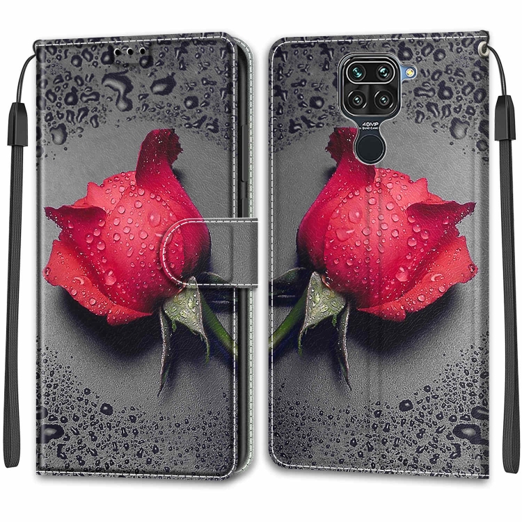 Para Xiaomi Redmi Note 9 / Redmi 10X 4G Dibujo de Color de Voltaje Cierre Magnético Horizontal Flip Pu Funda de Cuero con Soporte y Ranuras para Tarjetas (C14 Black Water Drop Rose)