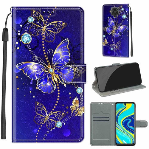 Para Xiaomi Redmi Note 9S / 9 Pro Dibujo de Color de Voltaje Cierre Magnético Horizontal Flip Pu Funda de Cuero con Soporte y Ranuras de Tarjetas (C11 Blue Golden Cadena Mariposas)