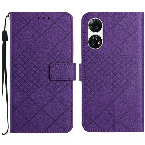 Funda de Cuero para ZTE Anshin Family A303Zt con Textura de Rejilla Rómbica (Púrpura)
