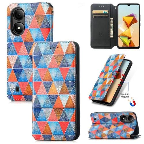 Funda de Cuero Magnética Caseneo para ZTE Blade A33S (Rhombus Mandala)