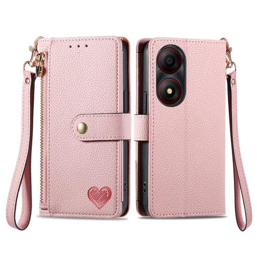 Funda de Cuero para ZTE Blade A34 Love Zipper con Lanyard (Rosa)