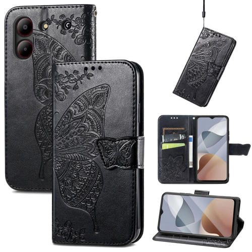Funda para ZTE Blade A54 de Cuero con Relieve Flor de Amor y Mariposa (Negro)