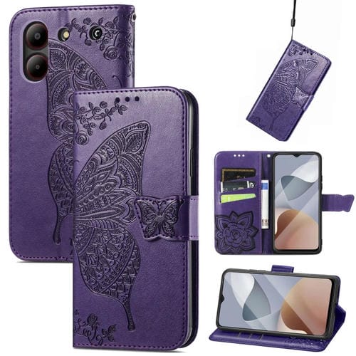 Funda para ZTE Blade A54 de Cuero con Relieve Flor de Amor y Mariposa (Púrpura Oscuro)