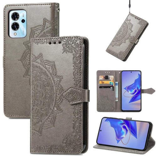 Estuche para ZTE Blade V40 Pro Mandala Flower Cuero en Relieve (Gris)