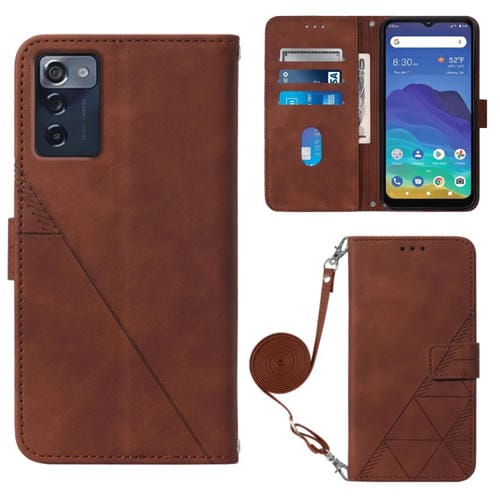 Funda de Cuero para ZTE Consumer Cellular Zmax 5G Crossbody con Tapa en Relieve (Marrón)