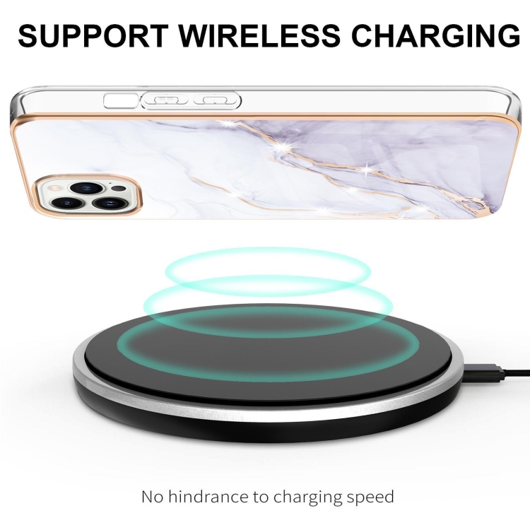 Caja de Teléfono iPhone 15 Pro Max Patrón Mármol Galvanoplastia TPU Doble Cara (Blanco)