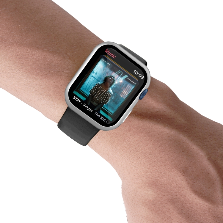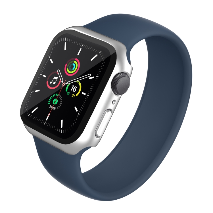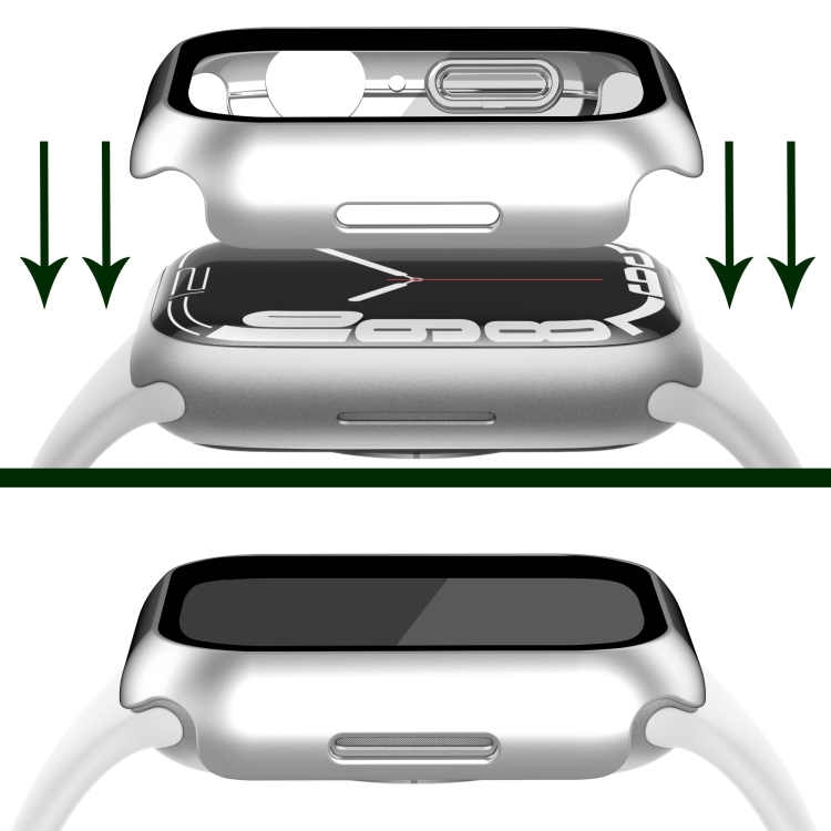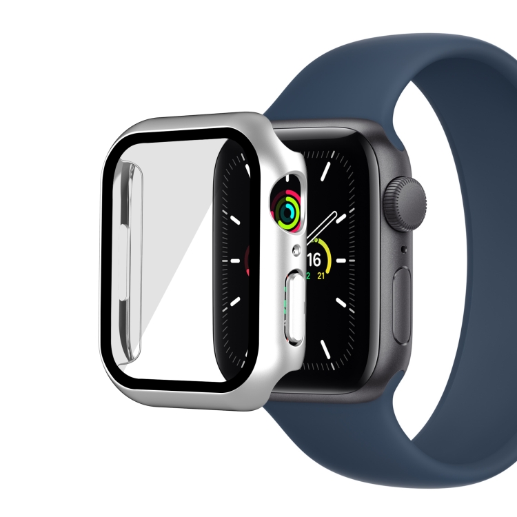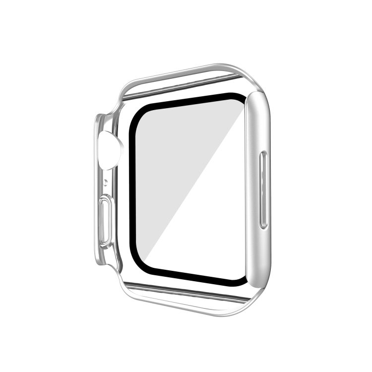PC con Todo Incluido Mate Galvanoplastia + Caja de Reloj Vidrio Templado para Apple Watch Series 9/8/7 41mm (Aluminio Plateado)