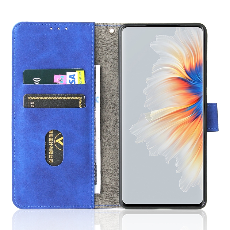 Piel de color sólido Siente la hebilla magnética Caja de cuero de la textura de la textura de la carne de becerro Horizontal con el soporte y las tragamonedas y la cartera para Xiaomi Mix 4 (azul)
