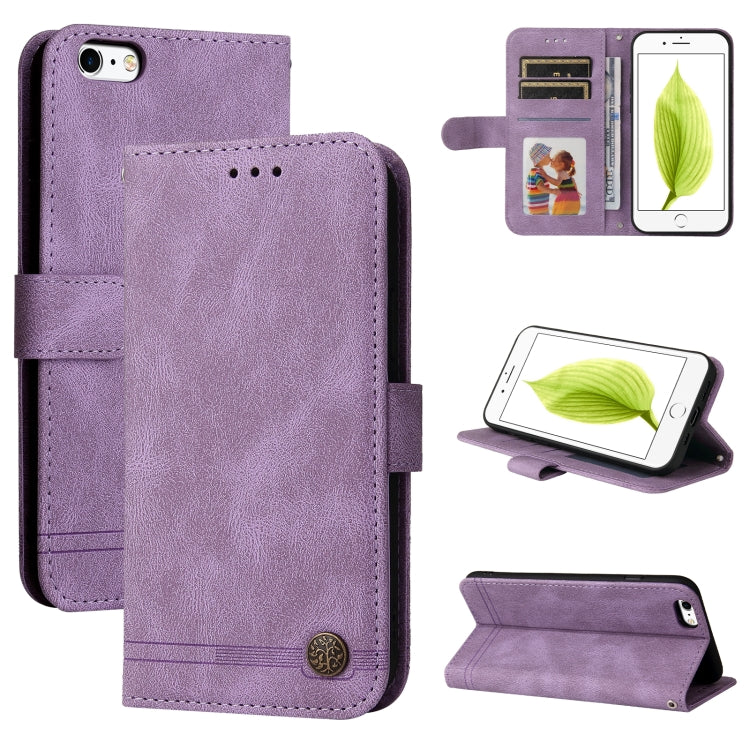 Funda de Cuero Feel Life Tree Metal Button para iPhone 6 Plus / 6S Plus con Soporte, Ranura para Tarjeta, Billetera, Marco y Correa (Púrpura)