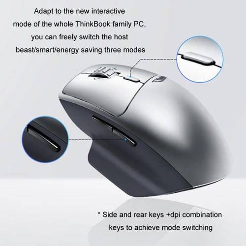 El Ratón Inalámbrico de diseño interactivo modo dual Bluetooth Lenovo Thinkbook Creador es un dispositivo de alta precisión y funcionalidad avanzada, diseñado para usuarios que requieren versatilidad y comodidad en su entorno de trabajo. Compatible con PCs de la familia ThinkBook, este Ratón permite cambiar entre modos Bestia, Inteligente y Ahorro de energía mediante una combinación de Botones, adaptándose a diferentes necesidades de uso. Su conectividad dual mediante Bluetooth y receptor USB de 2,4 GHz ofrece una experiencia fluida y estable, permitiendo la Conexión simultánea a dos dispositivos con un alcance efectivo de hasta 10 metros. Equipado con un Sensor ajustable de hasta 3200 DPI, proporciona una respuesta precisa y adaptable a diversas tareas. Además, su diseño ergonómico con ranuras laterales de material suave reduce la tensión en la muñeca, mejorando la comodidad durante largas sesiones de uso.