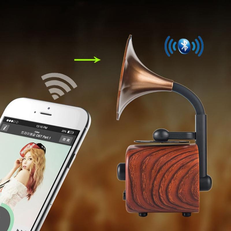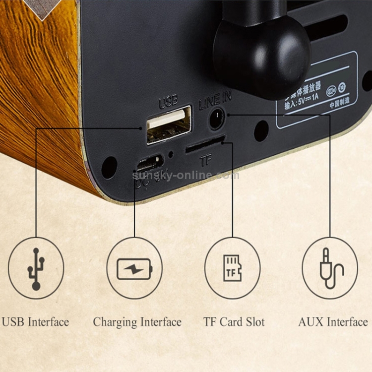 Mini Altavoz Bluetooth Retro Madera Portátil Sistema de Sonido Tf Fm Radio Subwoofer (Caqui)