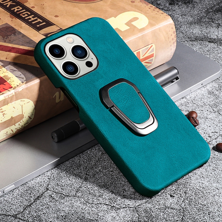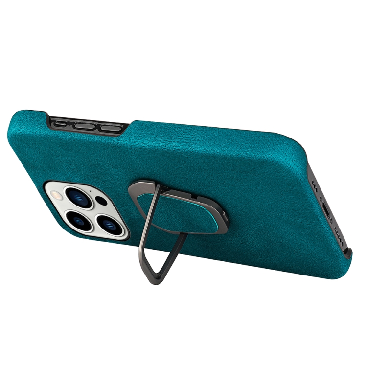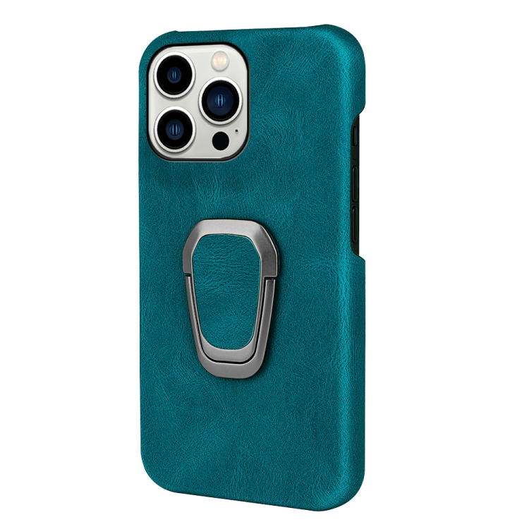 Funda Pu Phone Case con Ring Holder para iPhone 14 Pro (Cian)