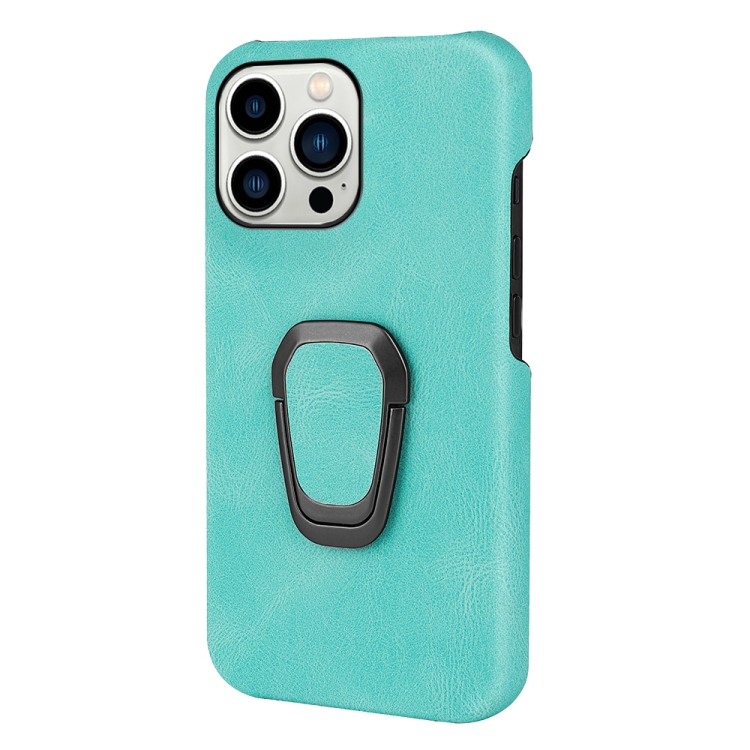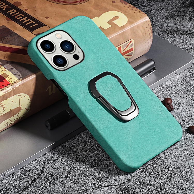 Funda Pu Phone Case con Ring Holder para iPhone 14 Pro (Verde Menta)