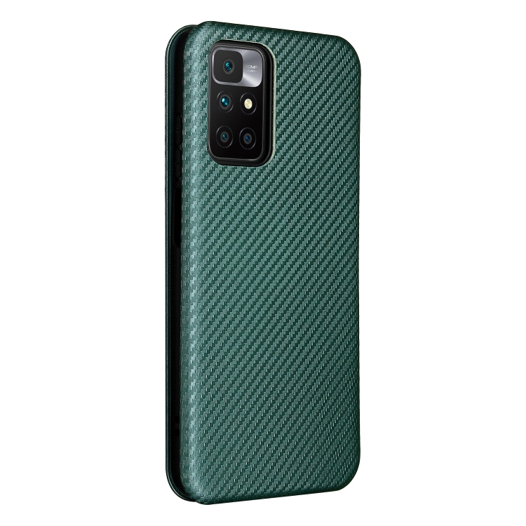 Textura de fibra de carbono Magnético Horizontal Flip TPU + PC + Funda de cuero PU con ranura para tarjeta para Xiaomi Redmi 10 (verde)