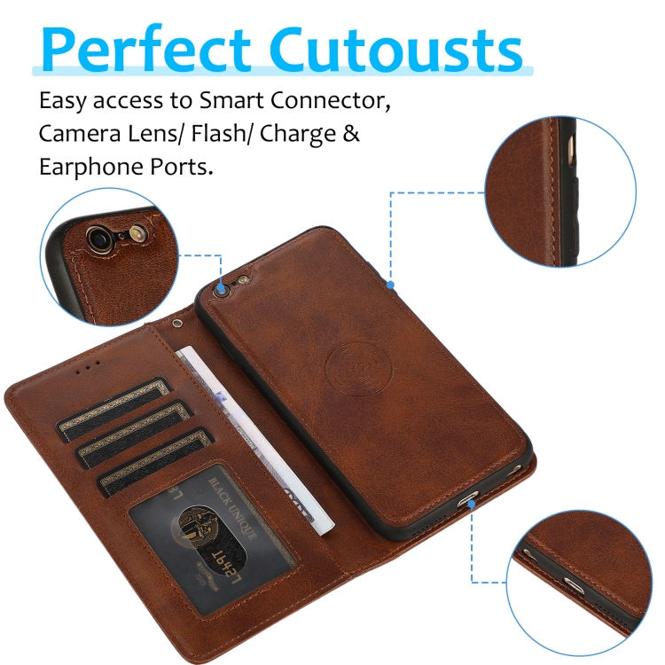 Funda de Cuero 2 en 1 para iPhone 6S Plus / 6 Plus Cubierta Magnética Desmontable con Soporte y Ranuras (Brown)