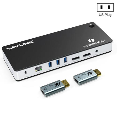• 1x Estación de acoplamiento Wavlink Utd21H Thunderbolt 3 60W Carga host 11 en 1 Puertos Pantalla dual 4K (Enchufe de EE.UU)