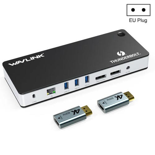 • 1x Estación de acoplamiento Thunderbolt 3 Wavlink Utd21H 60W con Carga host, Pantalla dual 4K y 11 Puertos (Enchufe de la UE)