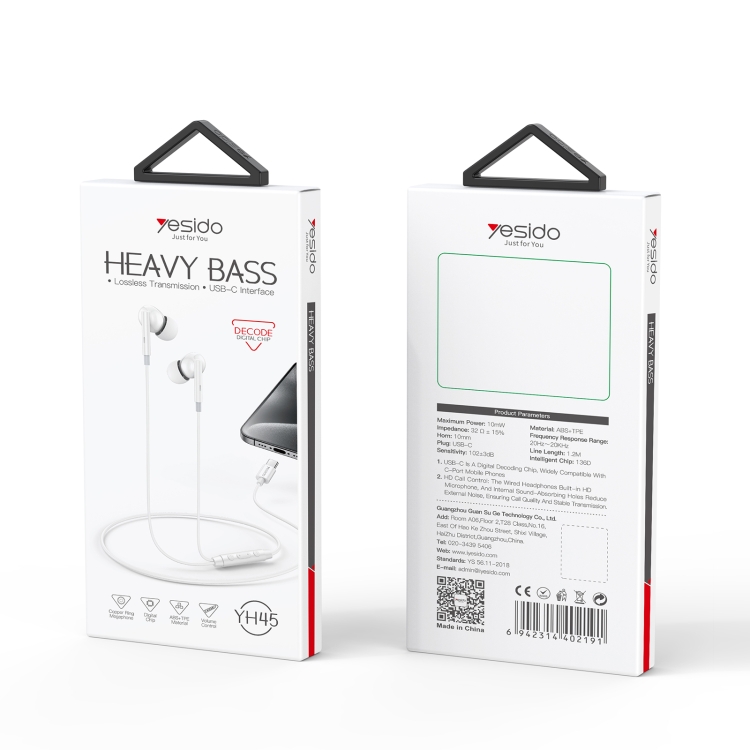 - 1x Auricular Yesido YH45 con Cable USB-C con Micrófono (Blanco)