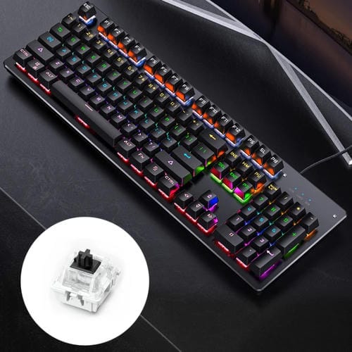 El Teclado Cableado Yindiao modelo Gaminjo con eje mecánico negro es un periférico diseñado para usuarios que requieren precisión y durabilidad en sus dispositivos de entrada. Compatible con cualquier equipo que disponga de interfaz USB, este Teclado de 104 teclas ofrece una experiencia ergonómica y cómoda gracias a su diseño pensado para largas sesiones de uso. Su función principal es proporcionar una respuesta Táctil eficiente mediante sus teclas con eje mecánico negro, ideales para actividades que demandan rapidez y exactitud como la escritura o el gaming. Además, incorpora retroiluminación dinámica ajustable que permite personalizar brillo y velocidad, mejorando la visibilidad en entornos con poca luz.